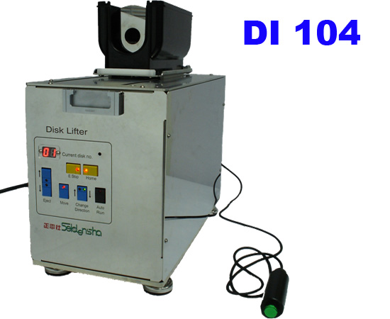 DI 104 is designed to handle shipping (200mm) cassette for different disk sizes (95mm disk cassette, 65mm/48mm disk cassette and 27.4mm/21,6mm disk cassette). Users of DI 104 can operate and inspect every single disk with the ease of a control stick. the system is built with a notification buzzer to indicate to the user that the system has reached either ends of the disk cassette. |